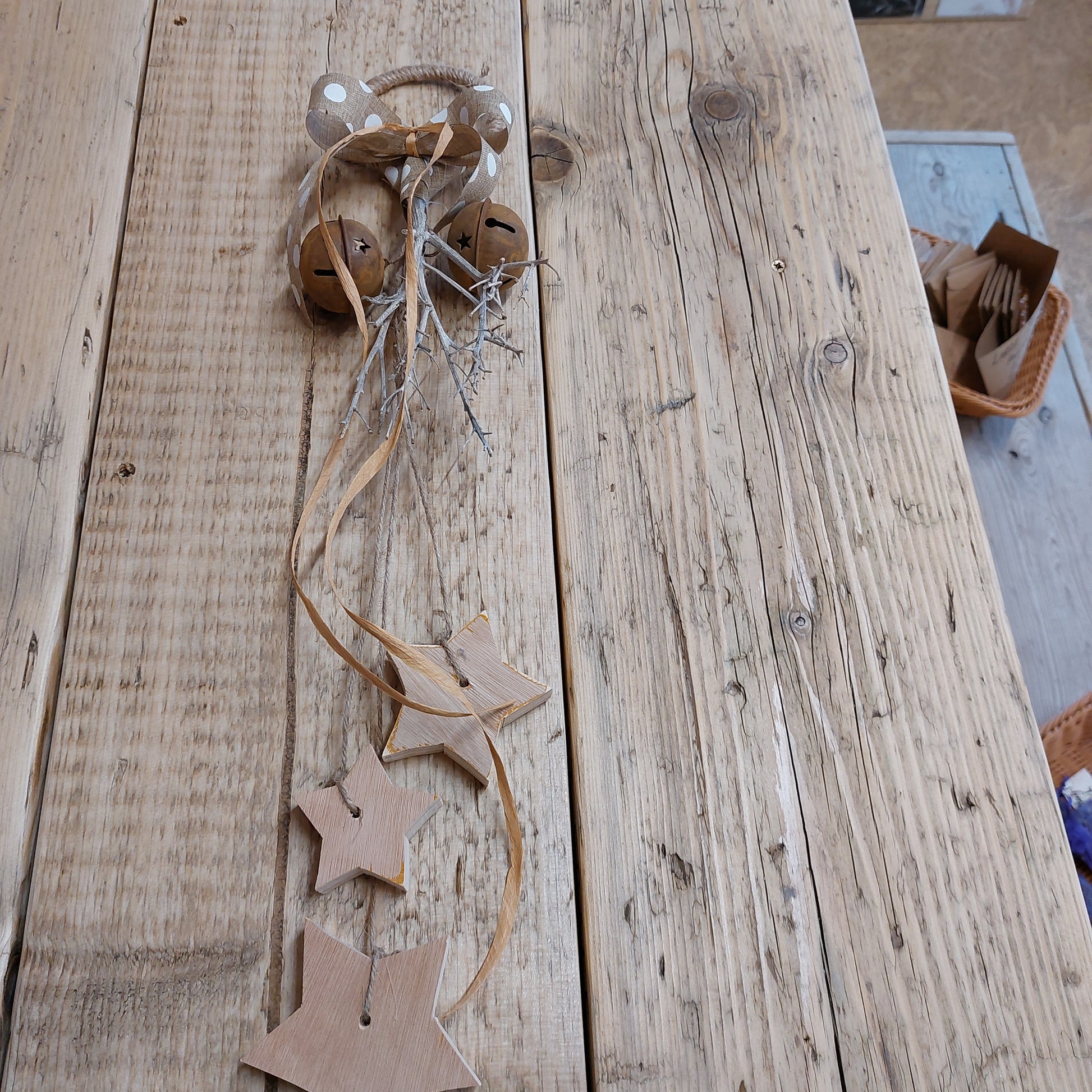 Handmade rustic door hanger with stars and bells