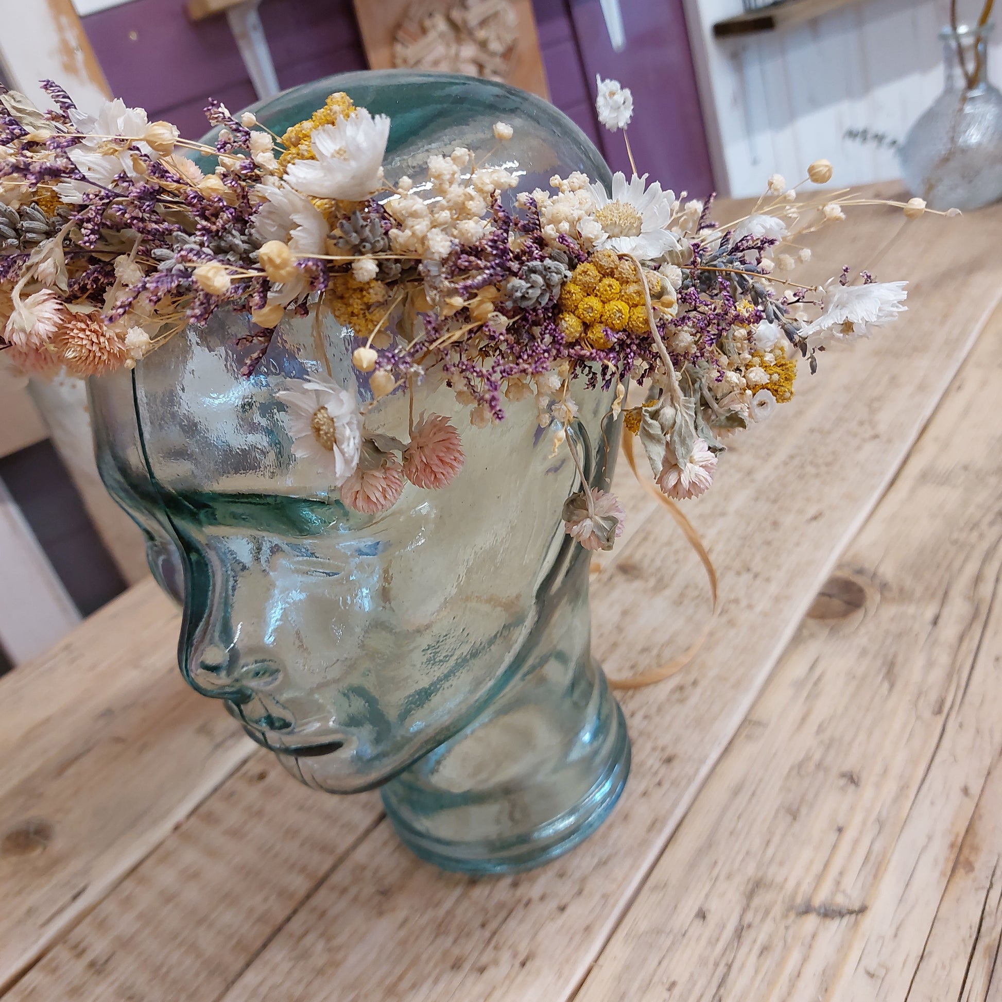 Elevate your special day with our handmade wedding and festival crown. Made with beautifully preserved dried flowers, this crown adds a touch of elegance and nature to any occasion. Perfect for the bride or guest, our crown is sure to be a stunning addition to any outfit.